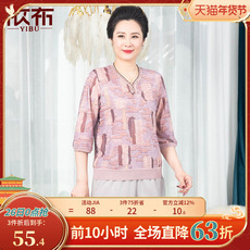 妈妈装2026春装新款V领中袖衫中老年减龄七分袖上衣宽大码T恤